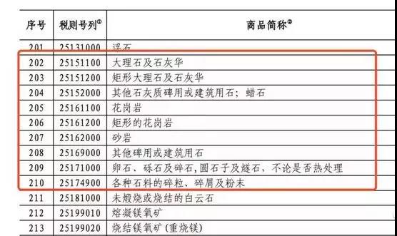 對(duì)美實(shí)施加征25%關(guān)稅石材產(chǎn)品信息如下: