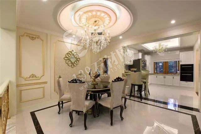 它與很多材料都能很好搭配,給人是溫暖舒適細(xì)膩溫馨的感覺。但也有其弱點,就是遠(yuǎn)看起來很像瓷磚,以至于很多人花了大價錢卻不出效果,其實莎安娜更適合做造型處理,比如歐式造型用莎安娜效果就很好。