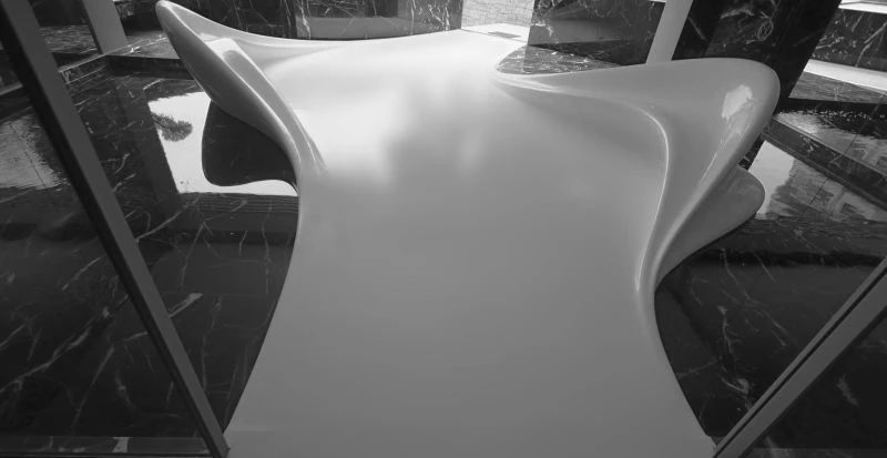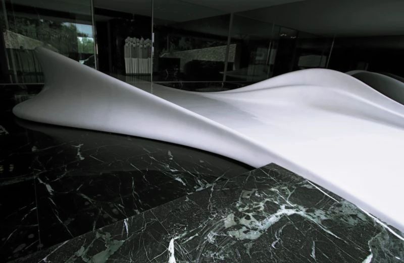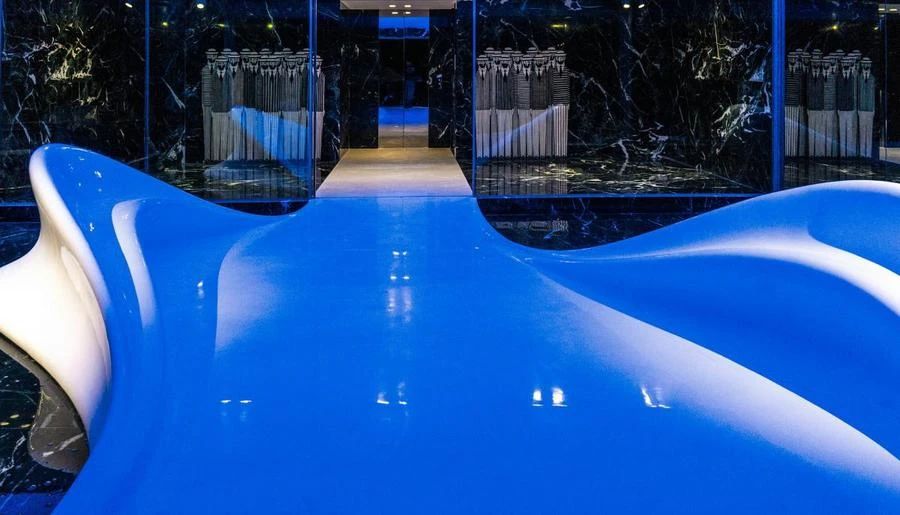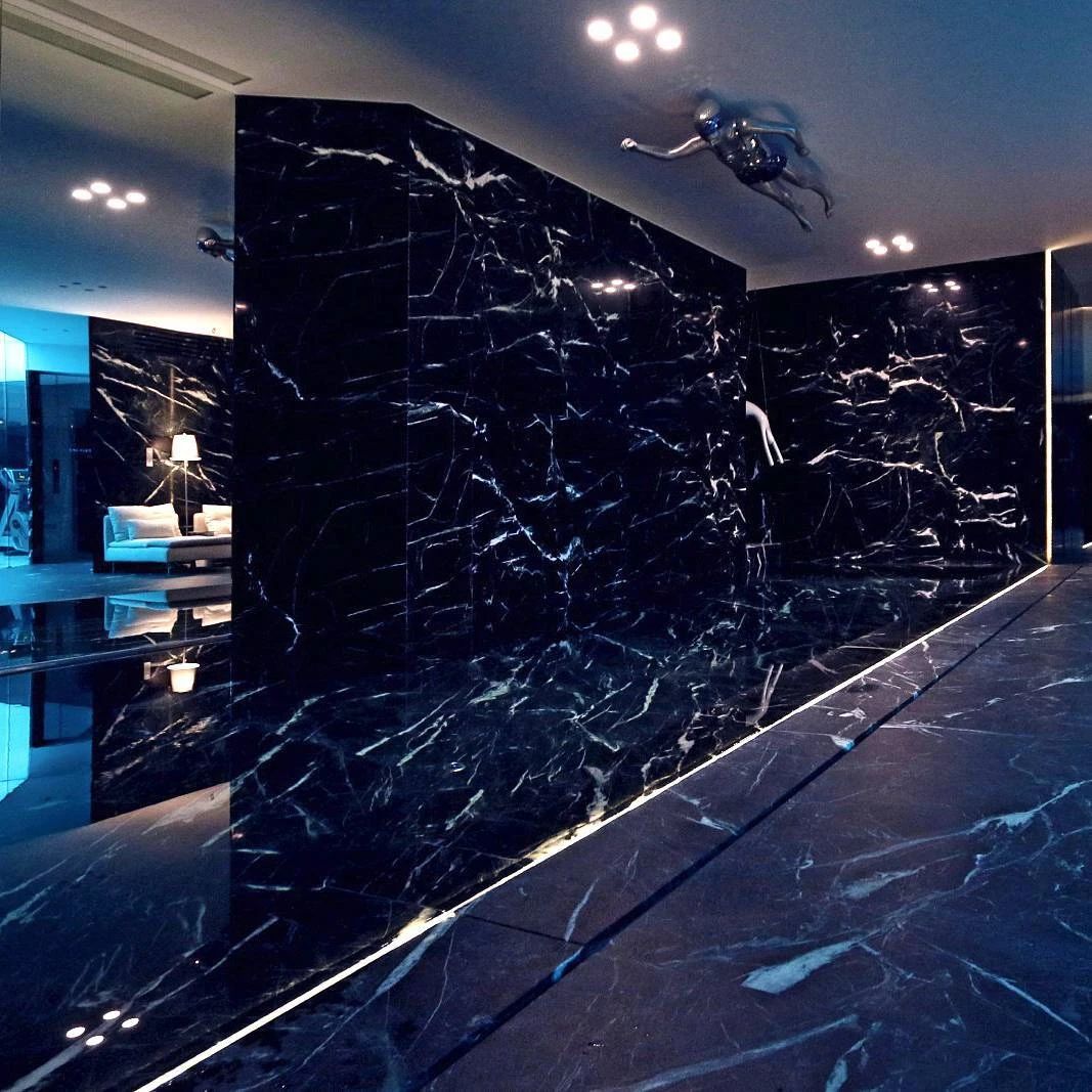 定制的白色座椅,在黑色大理石的襯托下更加迷人▽