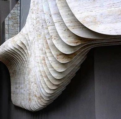 這些大理石經(jīng)過加工制造,每一塊的形狀大小都不相同,制好后運(yùn)輸?shù)浆F(xiàn)在,再由 30 名專業(yè)人員進(jìn)行安裝。