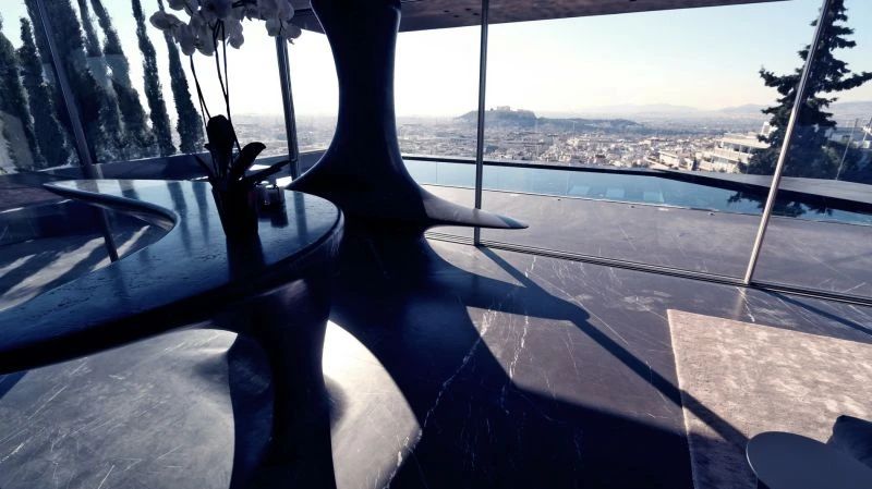 住宅選址在一個(gè)山坡上,由 Dimitrios Tsigos – Omniview 2015年設(shè)計(jì)的,共有 11 層,其中 6 層位于地下,5 層位于地上。
