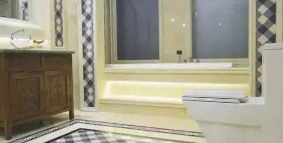 石英石的拼接設計也是可以花樣百出的,在仿古浴室柜與白色馬桶之間,它規(guī)劃出自己的界限,長方形的邊界之內,是石英石材質的霸氣彰顯,可遠觀,可近看,細微與粗獷兼而有之。