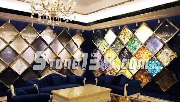 看多了經典石材,咱看瑪瑙石與魔方復合板的搭配應用。