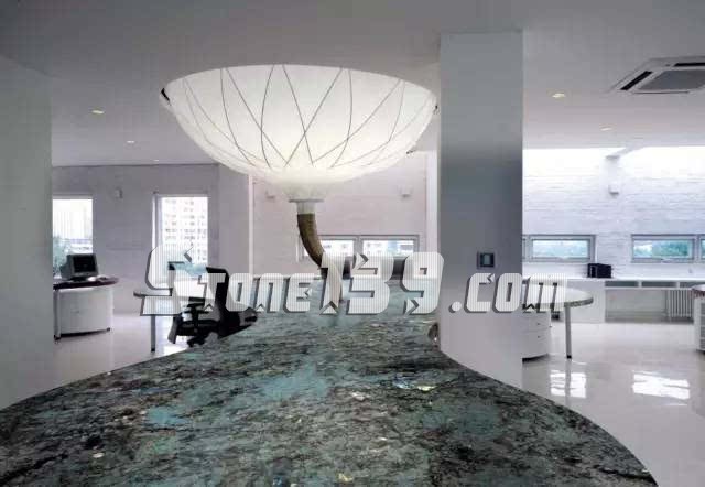 寶石藍富有大自然之色彩、質(zhì)感濃厚、高雅大方,紋路清晰、流暢。自然界中藍色石的品種極其稀有,室內(nèi)裝飾設(shè)計中主要是作為臺面板和背景墻,利用其紋理變化的和色彩搭配給整個空間增添了一份地中海的風(fēng)情,大大提高建筑產(chǎn)品的裝飾效果和檔次,使其更具高貴價值和設(shè)計魅力。