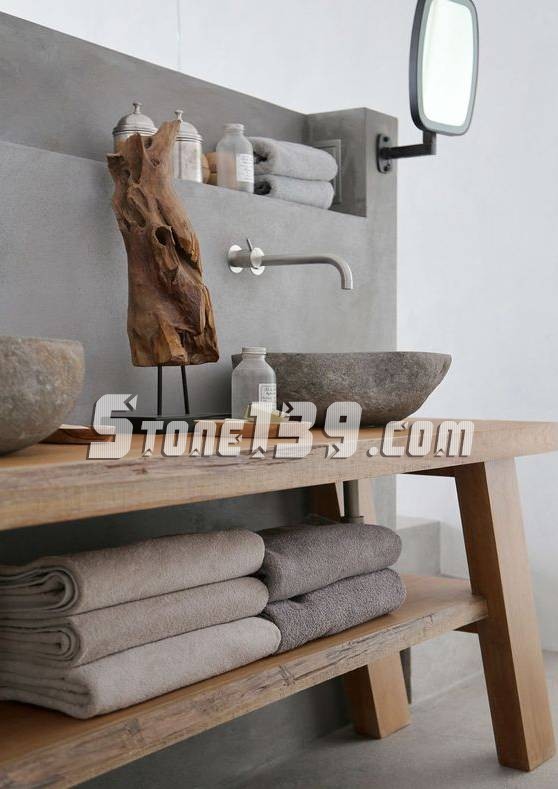 石材的材質(zhì)和原木營造出古樸風(fēng)格