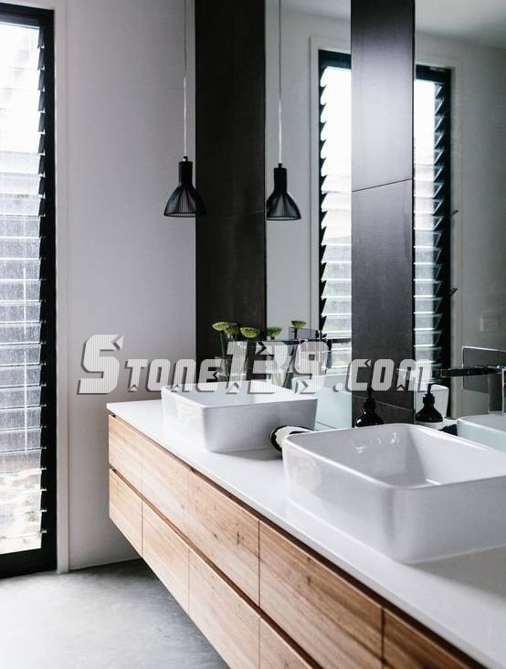 缺點(diǎn):需要在臺面加工車間安裝,設(shè)計(jì)師或安裝工人經(jīng)驗(yàn)不足會出現(xiàn)水盆偏離水槽柜中間位置;要選擇合適出水角度的水龍頭; 水盆第二次利用,拆卸不方便。