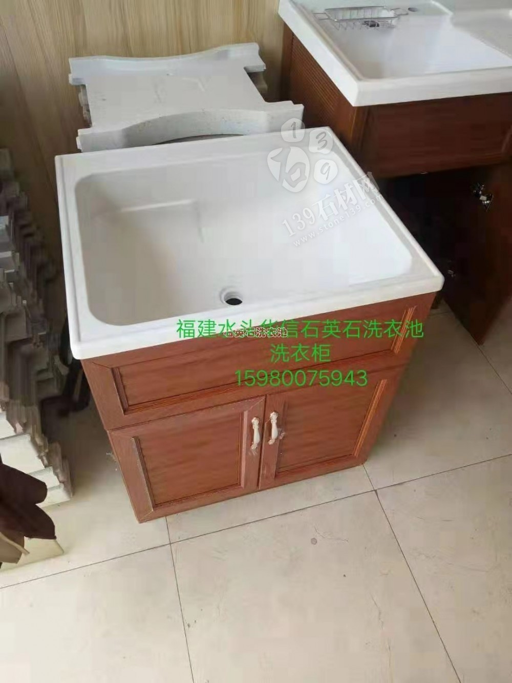 石英石洗衣池洗衣柜 洗衣池下面是木柜