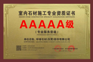置頂環(huán)球石材再獲室內(nèi)石材施工AAAAA級資質(zhì)