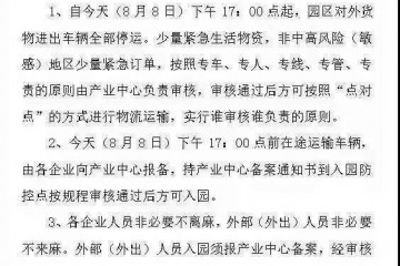 緊急通知各企業(yè):按市疫情防控指揮部通知精神,經(jīng)石材產(chǎn)業(yè)園疫情防控指揮部研究決定,現(xiàn)就當(dāng)前疫情防控有關(guān)工作通知如下:1、自今天(8月8日)下午17:00點(diǎn)起,園區(qū)對外貨物進(jìn)出車輛全部停運(yùn)。少量緊急生活物資,非中…