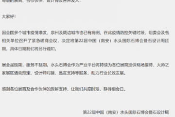 置頂水頭石材展延期舉辦通知:第22屆中國(guó)(南安)水頭國(guó)際石博會(huì)延期通知