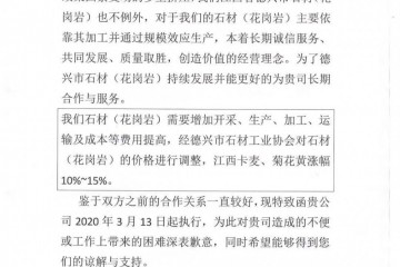 置頂江西德興市石材(花崗巖)產(chǎn)品漲價通知函,江西新卡麥、菊花黃漲幅10%~15%