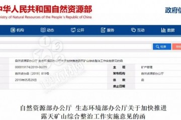 6月6日,自然資源部官網(wǎng)發(fā)布了《自然資源部辦公廳 生態(tài)環(huán)境部辦公廳關(guān)于加快推進(jìn)露天礦山綜合整治工作實(shí)施意見的函》。各省、自治區(qū)、直轄市人民政府辦公廳:  打贏藍(lán)天保衛(wèi)戰(zhàn),是黨的十九大作出的重大決策部署…