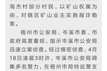 置頂廣西岑溪(楓葉紅)糯垌鎮(zhèn)村民敲詐勒索石材礦主,現(xiàn)抓獲19名涉案犯罪嫌疑人