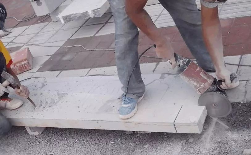 1.加工前對半成品青石板(條)進行優(yōu)選,不得有裂縫、隱殘、污點、紅白線、石瑕、石鐵等缺陷,且青石應色澤一致。避免因返工或加工過程中斷裂造成費工費時。