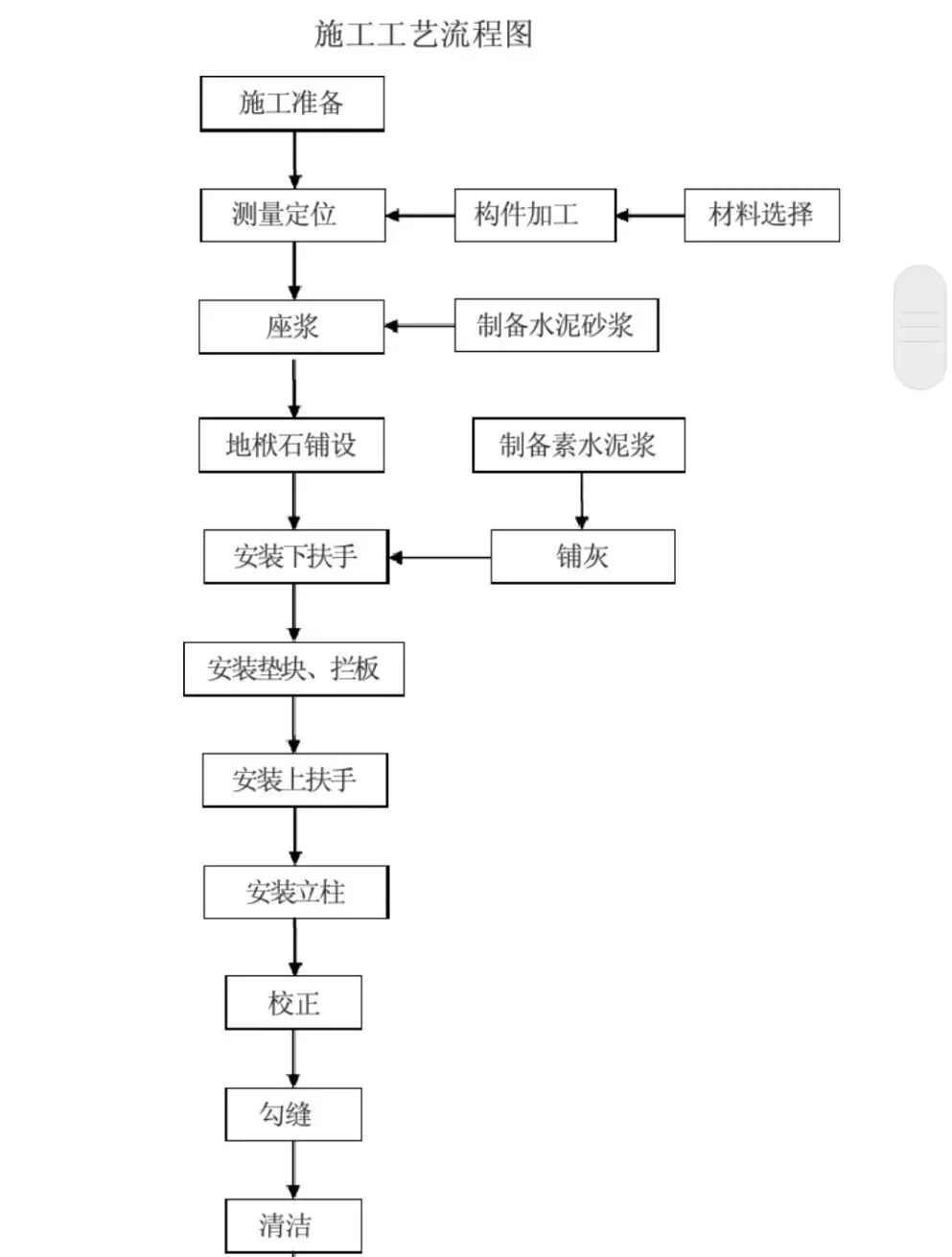 材料選擇→構(gòu)件加工→安裝地袱石→安裝下扶手→安裝下墊塊→安裝攔板→安裝上墊塊→安裝上扶手→安裝立柱→勾縫→棱角打磨→清洗。