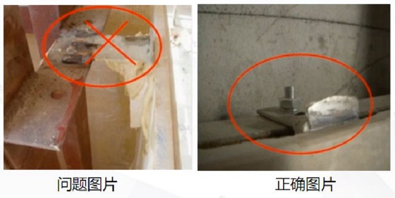 預(yù)防措施:提前檢查墻體抹灰層厚度,遇到墻體陽(yáng)角處。施工員需注意交底要求預(yù)埋件邊緣距離墻角保持一定的距離。
