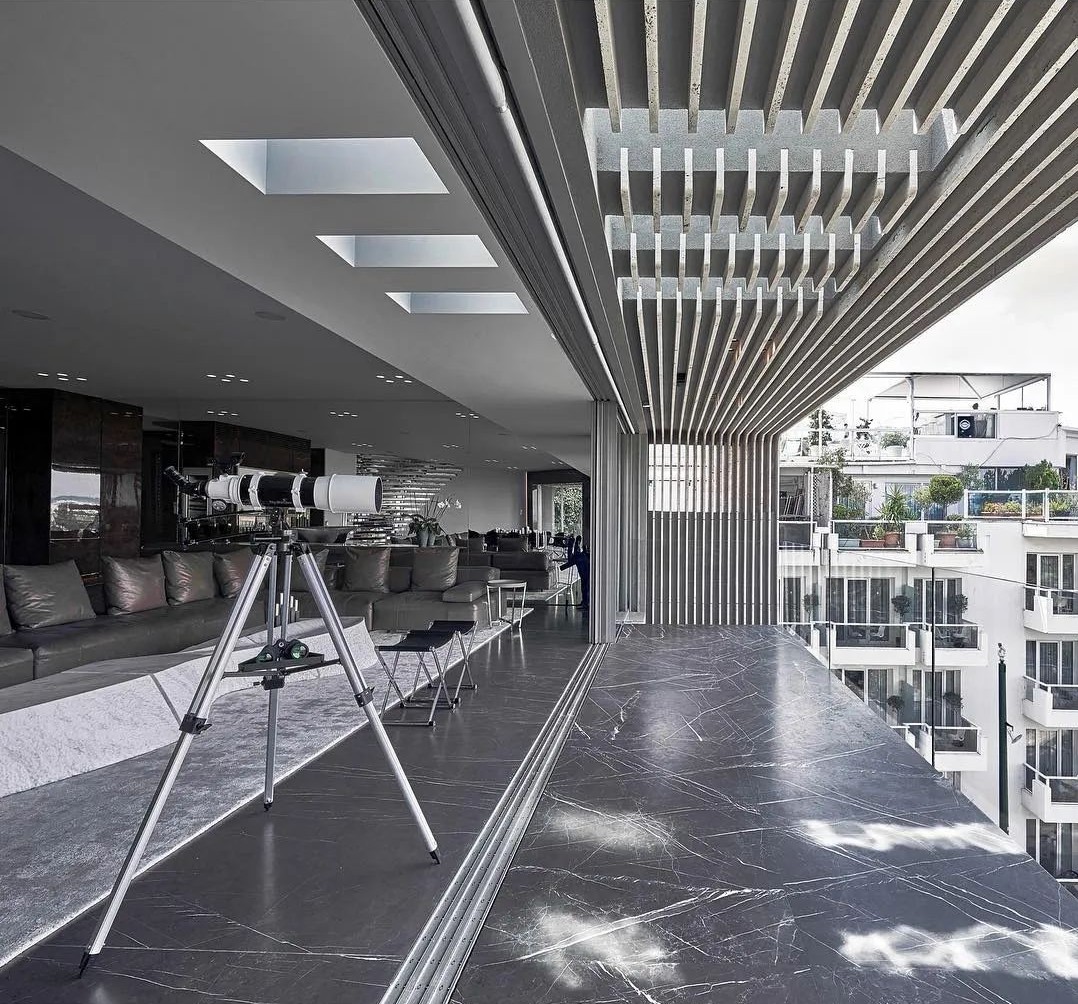 住宅選址在一個(gè)山坡上,由 Dimitrios Tsigos – Omniview 2015年設(shè)計(jì)的,共有 11 層,其中 6 層位于地下,5 層位于地上。