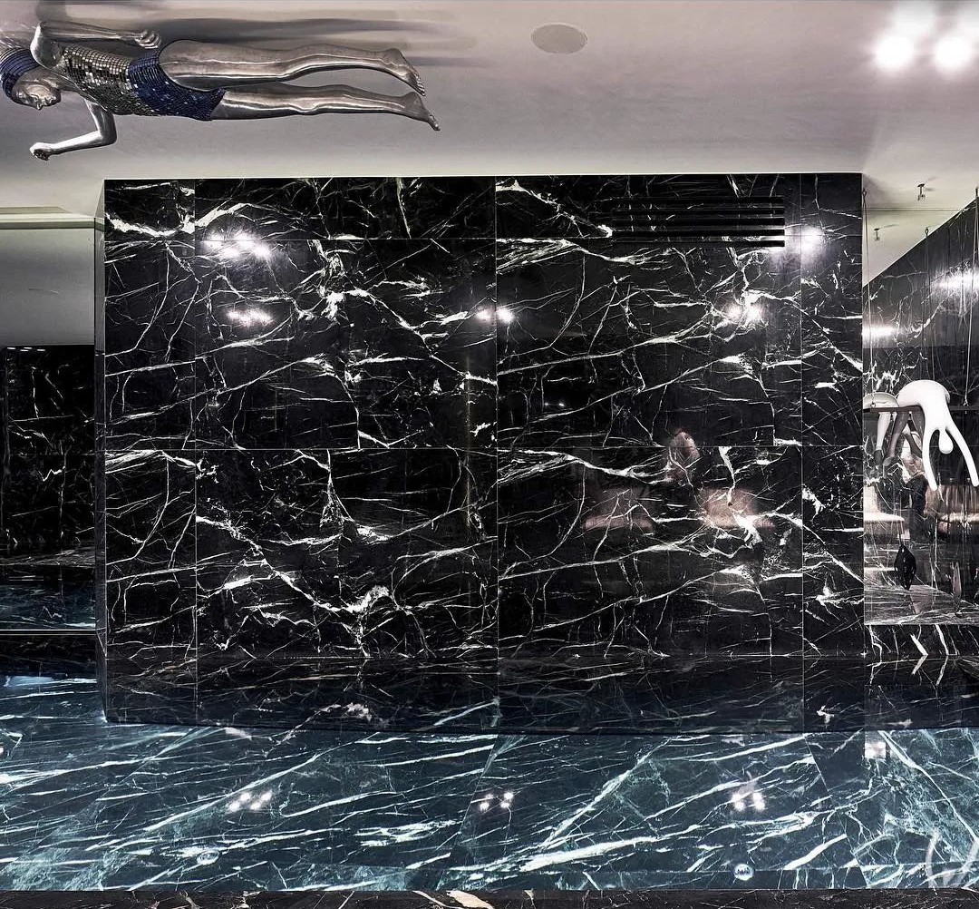 定制的白色座椅,在黑色大理石的襯托下更加迷人▽