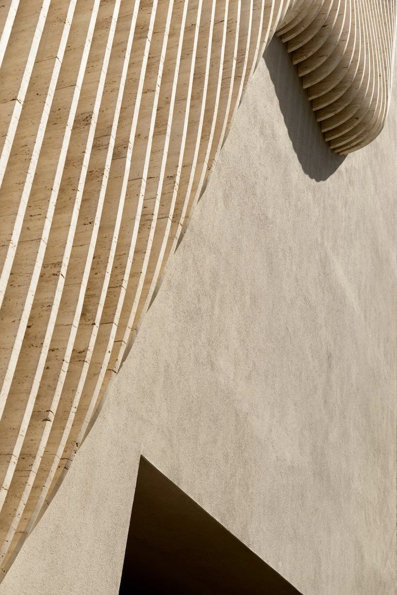 首先來看一下房子的外立面,設(shè)計(jì)師將 2290 塊大理石整合在一起,打造出立體感強(qiáng)且層次豐富又獨(dú)特的外墻設(shè)計(jì),與一般住宅的外立面有很大的不同。