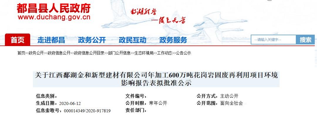 江西鄱湖金和新型建材有限公司年加工600萬噸花崗巖固廢再利用項目環(huán)境影響報告部分內容如下: