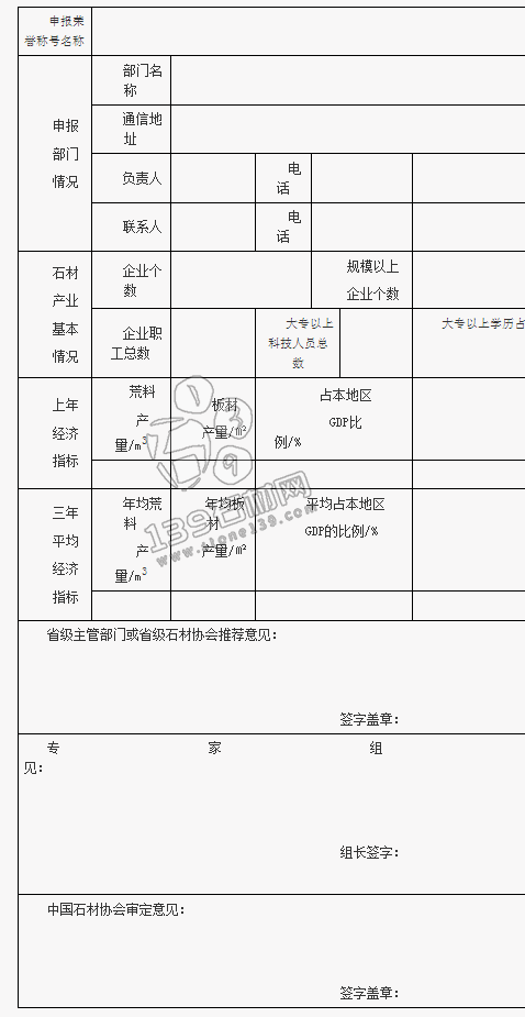 2、填寫(xiě)石材產(chǎn)業(yè)集群榮譽(yù)稱號(hào)申報(bào)表;