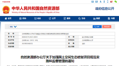 自然資源部辦公廳關于加強國土空間生態(tài)修復項目規(guī)范實施和監(jiān)督管理的通知