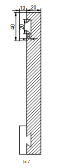 圖5與圖6的加工遵循一樣的加工工藝。加工時要注意的時凸臺部分與凹槽部分的配合問題。一般情況下凸臺部分寬度比凹槽部分寬度小1mm。凸臺與凹槽可以加工成通長的,也可以加工成短槽式的。加工成短槽式的加工難度更大,使用的加工設(shè)備為加工中心或雕刻機才能完成。粘接時槽內(nèi)要清潔干凈,吹干槽內(nèi)的水份。