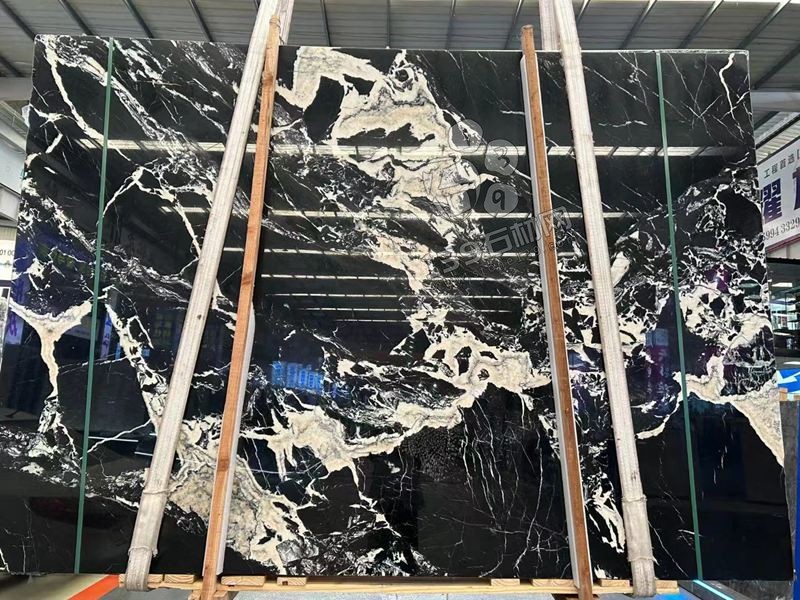 被打磨得極具光澤感的通透表面,神秘又深邃引發(fā)無限想象的黑色,遇上大理石多變紋理給視覺帶來的沖擊,能超越其他所有色彩