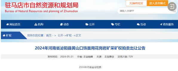 相關(guān)閱讀:2024年河南省泌陽縣春水飾面用花崗巖礦采礦權(quán)拍賣出讓公告