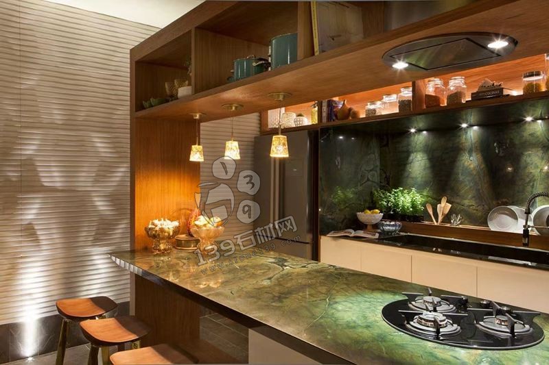 它的板面是深邃迷人的墨綠,白色的晶體融入其中,就好似吉祥如意的仙鶴,不僅質(zhì)地溫潤(rùn),更宛如大自然鬼斧神工的藝術(shù)品。而那熠熠生輝的綠色光澤,又好像將你帶入了生機(jī)勃勃的綠色世界。無(wú)論是家居裝飾還是藝術(shù)收藏,一塊如此特別的大理石都能讓你的品味與個(gè)性得到充分的展現(xiàn)。