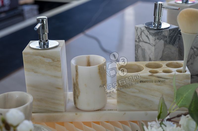 石材衛(wèi)浴器具:天然石材可以用于制作洗手盆、浴缸等衛(wèi)浴器具。例如,用天然火山巖制作的浴缸,其獨特的多孔結(jié)構(gòu)具有良好的防滑性,而且火山巖本身含有多種對人體有益的礦物質(zhì),在沐浴過程中可能會對人體皮膚產(chǎn)生一定的保健作用。用玉石制作的洗手盆,外觀溫潤、質(zhì)感細膩,給人一種高端奢華的感覺。