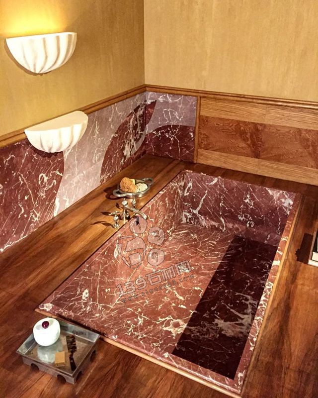在潮濕環(huán)境中,紫羅紅大理石的耐候性需優(yōu)先考量(建議選人工染色板或優(yōu)質(zhì)天然石)??蓪⑵溆糜谠∈遗_(tái)面或局部墻面,搭配啞光黑金屬支架或深色瓷磚,形成高級(jí)感對(duì)比。例如,懸浮式臺(tái)盆搭配紫羅紅大理石臺(tái)面,背景墻以幾何拼花點(diǎn)綴,瞬間打破傳統(tǒng)衛(wèi)浴的沉悶。