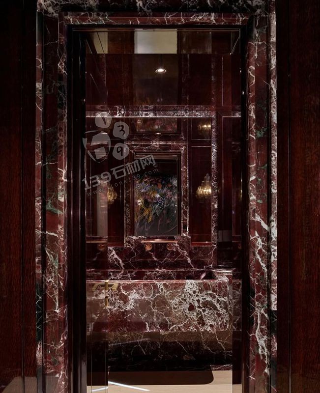 樓梯踏步:以紫羅紅大理石包邊臺(tái)階,搭配啞光金屬扶手,打造儀式感動(dòng)線。