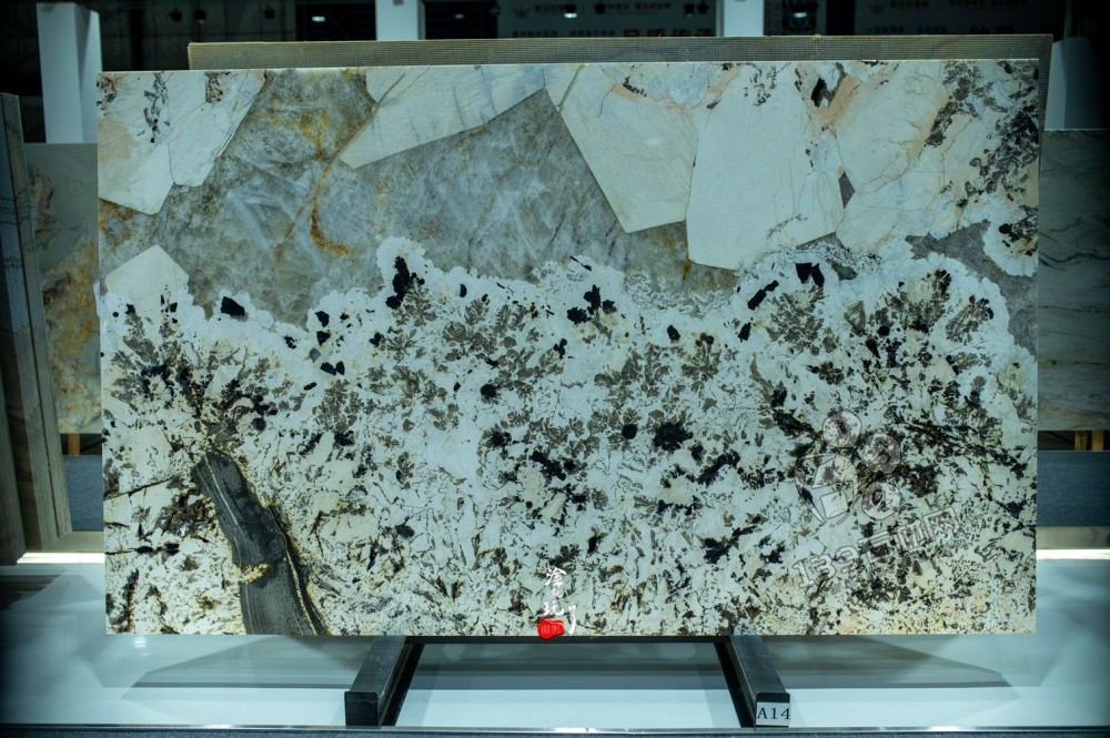 這些板面沒有重復(fù)的紋理,色塊拼接的 “破碎感”、紋理延伸的 “隨機性”,恰是天然石材的珍貴 —— 每一塊都是地球 46 億年演化的 “孤品”,用于空間裝飾時,既能當(dāng)背景墻營造 “山河入座” 的大氣,也能切割成臺面,讓日常觸碰都像與自然對話。