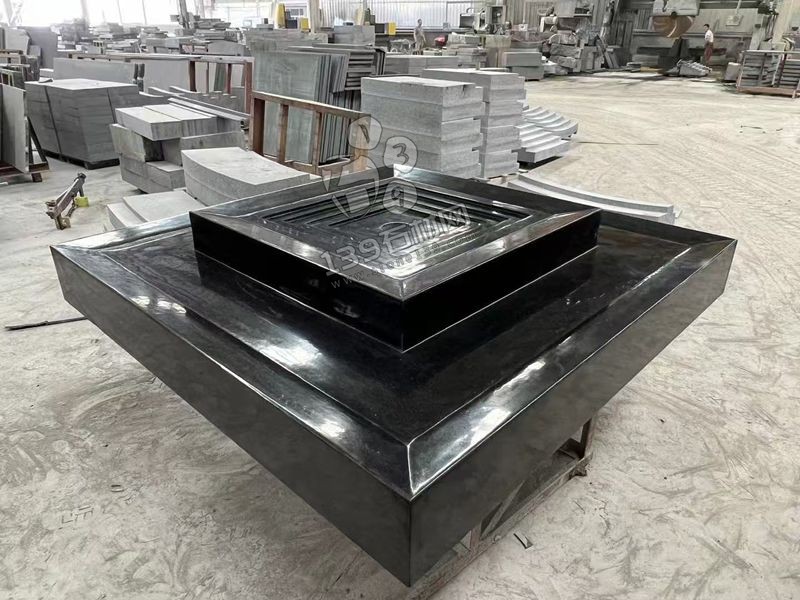 一、產(chǎn)品核心特點(diǎn) 材質(zhì)與工藝特性 采用黑色花崗巖(如中國(guó)黑、蒙古黑、芝麻黑、黑金沙等優(yōu)質(zhì)品種),石材本身質(zhì)地堅(jiān)硬致密,莫氏硬度高。通過多樣工藝可塑造豐富質(zhì)感: 表面處理:光面(拋光)如鏡面,能強(qiáng)烈反射天光與環(huán)境,營(yíng)造奢華現(xiàn)代感;啞光面(荔枝面、火燒面、自然面)粗獷質(zhì)樸,防滑性好,更貼近自然;水洗面則模擬水波紋理,增強(qiáng) “流水” 意境。 異形加工:借助高壓水刀等技術(shù),可精準(zhǔn)切割出流線型、幾何形等復(fù)雜造型(如圓形水缽、方形疊水臺(tái)),滿足個(gè)性化設(shè)計(jì)需求。 視覺藝術(shù)表現(xiàn)力 黑色基底自帶深邃、沉穩(wěn)的氣質(zhì),與水流的 “靈動(dòng)柔和” 形成強(qiáng)烈對(duì)比,讓水景的 “動(dòng)靜張力” 更具藝術(shù)感: 光面石材(如拋光黑金沙)因含金色 / 銀色礦物顆粒,水流過時(shí)光澤璀璨,能成為景觀焦點(diǎn),適配歐式奢華、現(xiàn)代時(shí)尚風(fēng)格; 啞光 / 紋理石材(如火燒面中國(guó)黑)則通過粗獷肌理吸收光線,營(yíng)造禪意、自然的靜謐氛圍,適合新中式、日式枯山水等風(fēng)格。