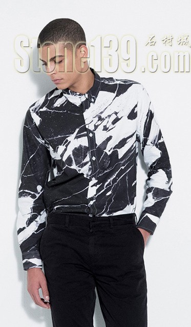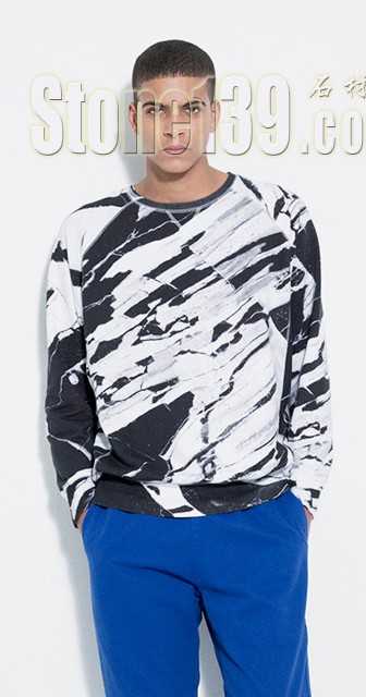而整體視覺基本是圍繞藝術家Susan Arnild大理石圖紋設計進行,充滿力量感的黑白板塊融入在服裝里,抽象地表達藝術效果,特別是滑板的效果讓人覺得是一塊“石板”,非常特別。