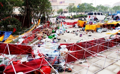昨天上午9時(shí)許,市民沈先生撥打本報(bào)熱線稱,他路過江陽路時(shí),在御峰國際廣場(chǎng)看到瓷器玉石展的展棚東倒西歪,展位上不少瓷器和玉石已成了碎片,很多人圍著這些碎片議論紛紛。聽展位上的人說,好好的展覽變成這樣,都是前天夜里的大風(fēng)和暴雨鬧的。