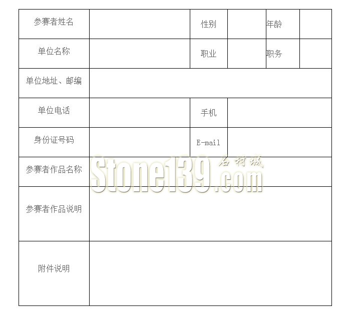 2015全國石雕石刻設(shè)計(jì)大賽報(bào)名表