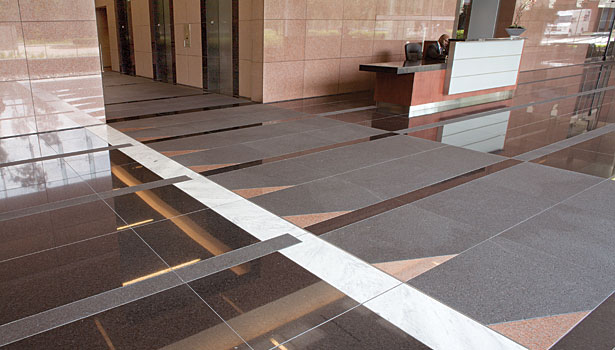 整個(gè)項(xiàng)目花了一年半的時(shí)間里從開始到結(jié)束完成設(shè)計(jì),約9600平方英尺的紅色花崗巖,3200平方英尺的Mesabi黑色花崗巖和2600平方英尺的冷泉黑色花崗巖拋光,打磨和熱完成工作——由Coldspring冷泉,MN。 的材料被用于部分外立面,內(nèi)部大堂墻壁和地板上。 此外,拋光切諾基白色大理石鋪路材料,由田納西大理石公司Friendsville,TN,被合并為口音到地板的模式。