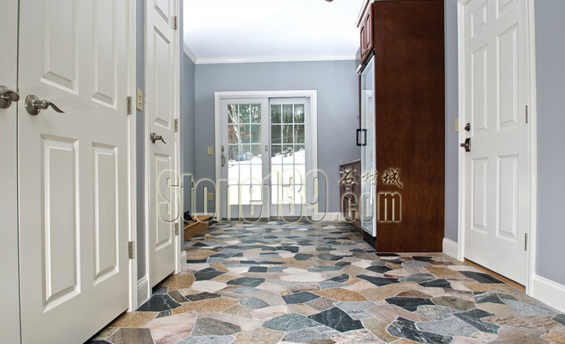 誰說家里的石材地板一定要切成方方正正的,來自美國的設(shè)計師突發(fā)奇想隨意從一塊不規(guī)則石材開始 鋪地,選用多種顏色的材料進(jìn)行隨性鋪貼。