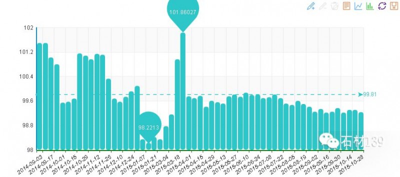 據(jù)“中國·水頭石材指數(shù)”系統(tǒng)監(jiān)測,20151028期石材周價格指數(shù)收報于97.90點,環(huán)比下調(diào)0.02點,下調(diào)約0.02%。本周石材價格指數(shù)略微下調(diào)、逐漸趨穩(wěn),除花崗石價格略微下調(diào)外,大理石、其他石材類價格環(huán)比持平,合成大理石類價格也基本與上周持平。本周大部分石材品種價格穩(wěn)定,少部分庫存大理石及花崗石荒料繼續(xù)降價處理。近期水頭石博會臨近,市場人氣有所升溫,部分大理石及合成大理石大板價格略微上調(diào)。