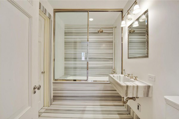 現(xiàn)代大理石浴室就像是奢侈品的本質(zhì),紋路、細節(jié)、深度處處都是驚喜,為了保證這一私人空間設(shè)計師使用了不同類型透明度設(shè)計。