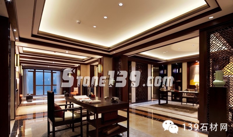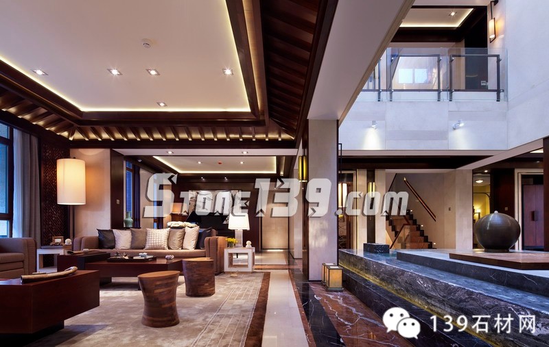 以“玉蘊(yùn)”為概念,將璞玉的氣質(zhì)與故宮的傳統(tǒng)經(jīng)典建筑形式,結(jié)合度假的自然感覺(jué),透過(guò)玉石 ,木紋,金屬,壁布等材料的砌合,表達(dá)當(dāng)代東方美學(xué)氣質(zhì)。