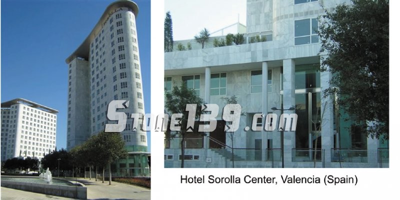 大理石的洗手間,鍍金的水龍頭,各種臺階,圓柱,地面使用的都是這種天然大理石,以此來領(lǐng)先酒店裝修的新潮設(shè)計,那些在裝 飾方面尋找與眾不同,時髦和新穎的酒店,都很喜歡這種天然石材。另外,還可用于外墻的裝飾,這樣使酒店看起來與眾不同,最有代表性的酒店是Valecia (瓦倫西亞)市的Hotel Sorolla Center (索若亞中心酒店)。