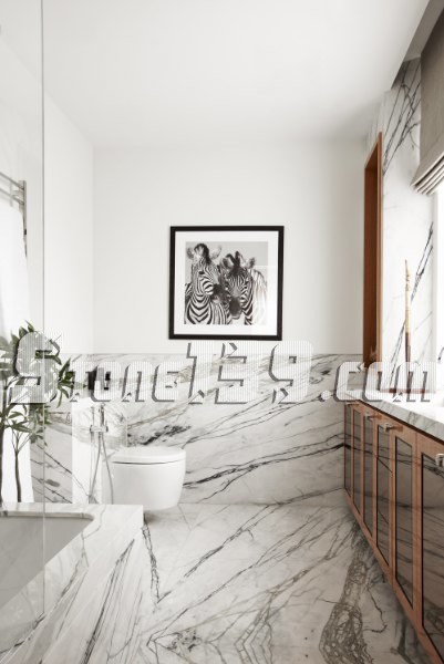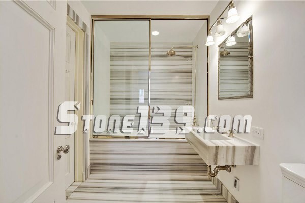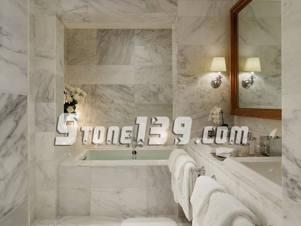 直紋白(馬爾馬拉白)是一種獨(dú)特的大理石,就像上面例子,水平平衡的大理石組合展示一個(gè)現(xiàn)代化的精致浴室,其優(yōu)雅的氛圍讓你的家看起來(lái)像一個(gè)豪華酒店。