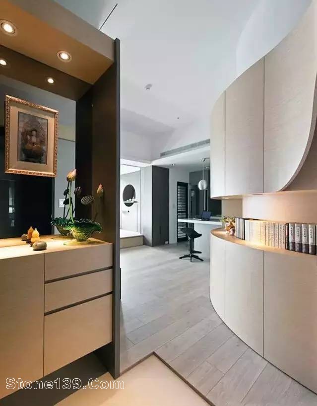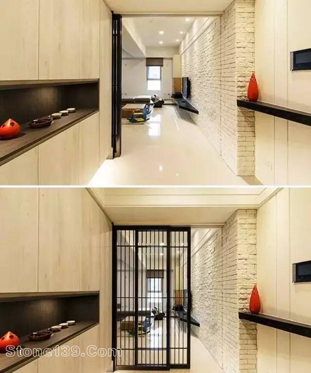 在地面裝飾材料的選擇上,人們往往有個誤區(qū):即走廊的使用率高,地面要用耐磨的裝飾材料。其實家庭和商場不同,所以沒有必要選擇像“?;u”那樣耐磨的材料。其實您在選擇走廊的地面裝飾材料時,防滑才是最重要的。因此,大部分的模板、石材板、大理石板,都可以用在走廊的地面上。下面就一起來欣賞那些漂亮的石材走廊設計裝飾