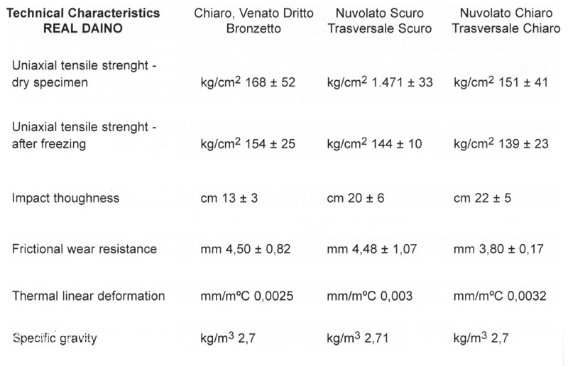 Real Daino 三款石材的參數(shù)表