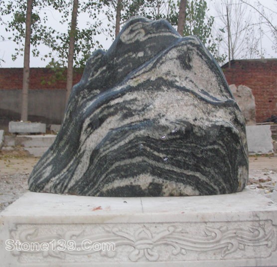 雪浪石的文化價(jià)值更是深邃。四大名石的名稱都是依傍產(chǎn)地的名稱而命名的,而真正以石質(zhì)特征、內(nèi)涵命名的觀賞石應(yīng)首推雪浪石,早在公元1093年,139石材網(wǎng)蘇東坡任定州知州時(shí),巡視曲陽(yáng)得一奇石,但見黑質(zhì)白脈,文如飛雪浪涌,酷似當(dāng)時(shí)兩位蜀地畫家孫位、孫知微所畫的“石澗奔流,盡水之變”的雪浪圖,遂詩(shī)性大發(fā),詠出“雪浪石”詩(shī)二首,其中“畫師爭(zhēng)摹雪浪勢(shì),天工不見雷斧痕”等佳句成為后代賞石家們?cè)u(píng)判雪浪石高下的圭臬。蘇翁的書屋也自題為“雪浪齋”,又命曲陽(yáng)的匠人用曲陽(yáng)的漢白玉雕成丈八芙蓉盆,將雪浪石供于盆中,且勒銘于盆唇,銘曰:“盡水之變蜀兩孫,與不傳者歸九原。異哉駁石雪浪翻,石中乃有此理存。玉井芙蓉丈八盆,伏流飛空溯其根。東坡作銘豈多言,四月辛酉紹圣元。”