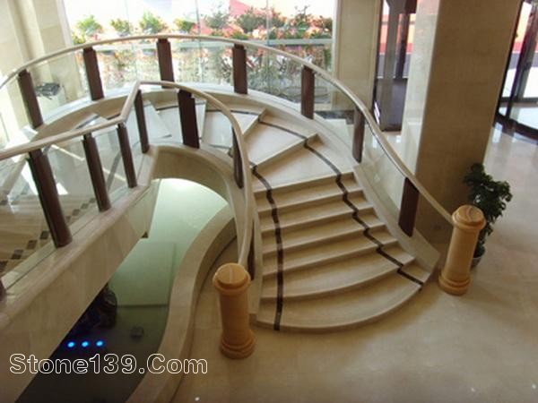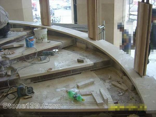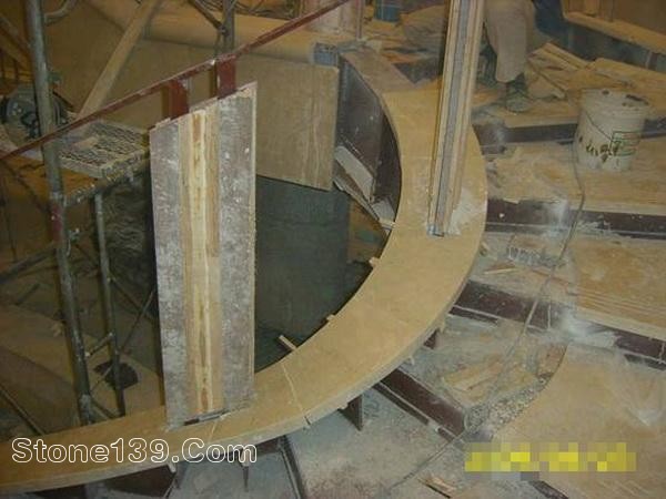 酒店大堂大理石旋轉樓梯現(xiàn)場安裝圖