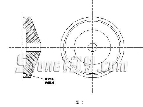 (2)為了增加鋸片的彈性,使其受力均勻,在夾盤上開一圈槽,嵌入橡膠條或軟金屬。如圖2:
